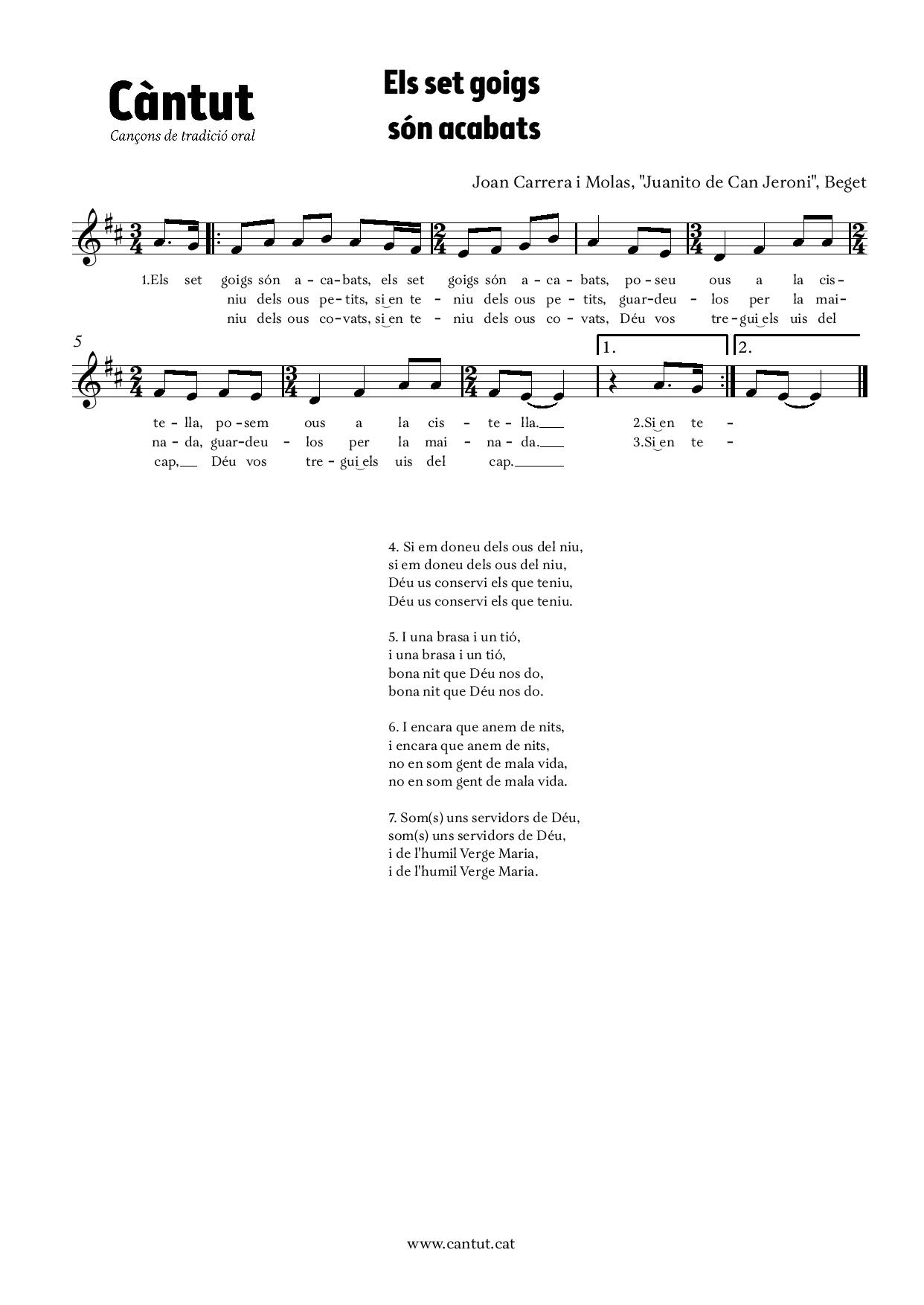 Es tracta de set corrandes que es cantaven per les caramelles.