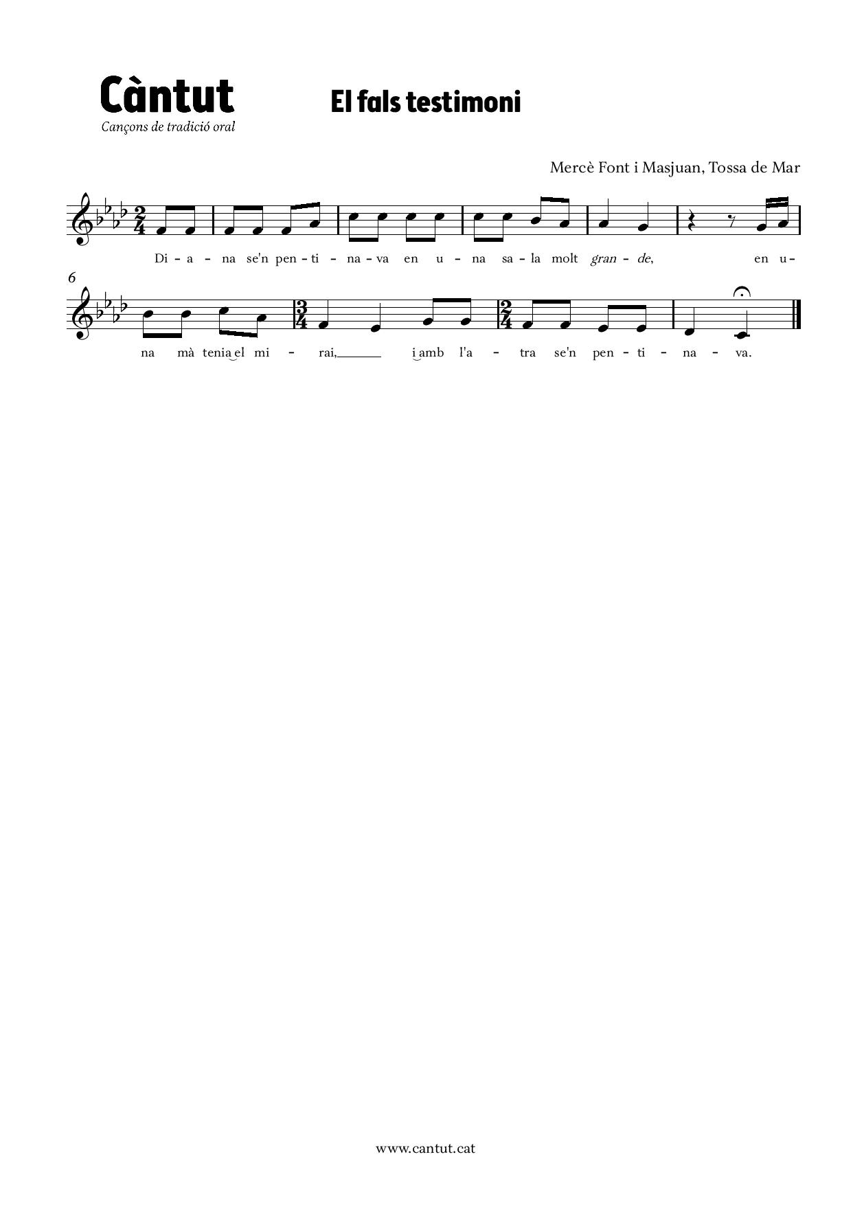 La primera versió en català que hem trobat recollida és de l'any 1893, confegida a partir de diverses variants. Apareix dintre el "Romancer Popular de la Terra Catalana" de Marià Aguiló i Fuster amb el títol "Les dues dianes o Lo fals testimoni".