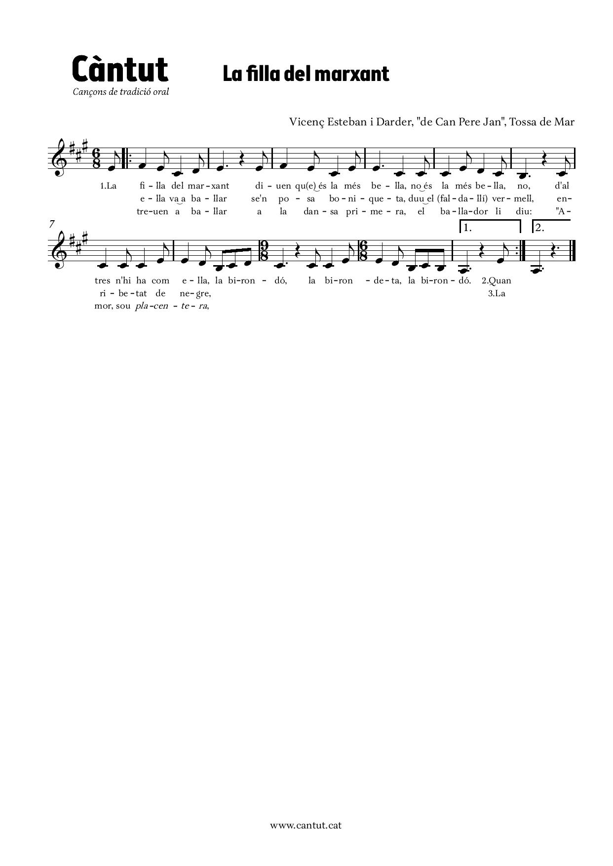 La filla del marxant, diuen que és la més bella, no és la més bella, no, d’altres n’hi ha com ella, la birondó, la birondeta, la birondó.