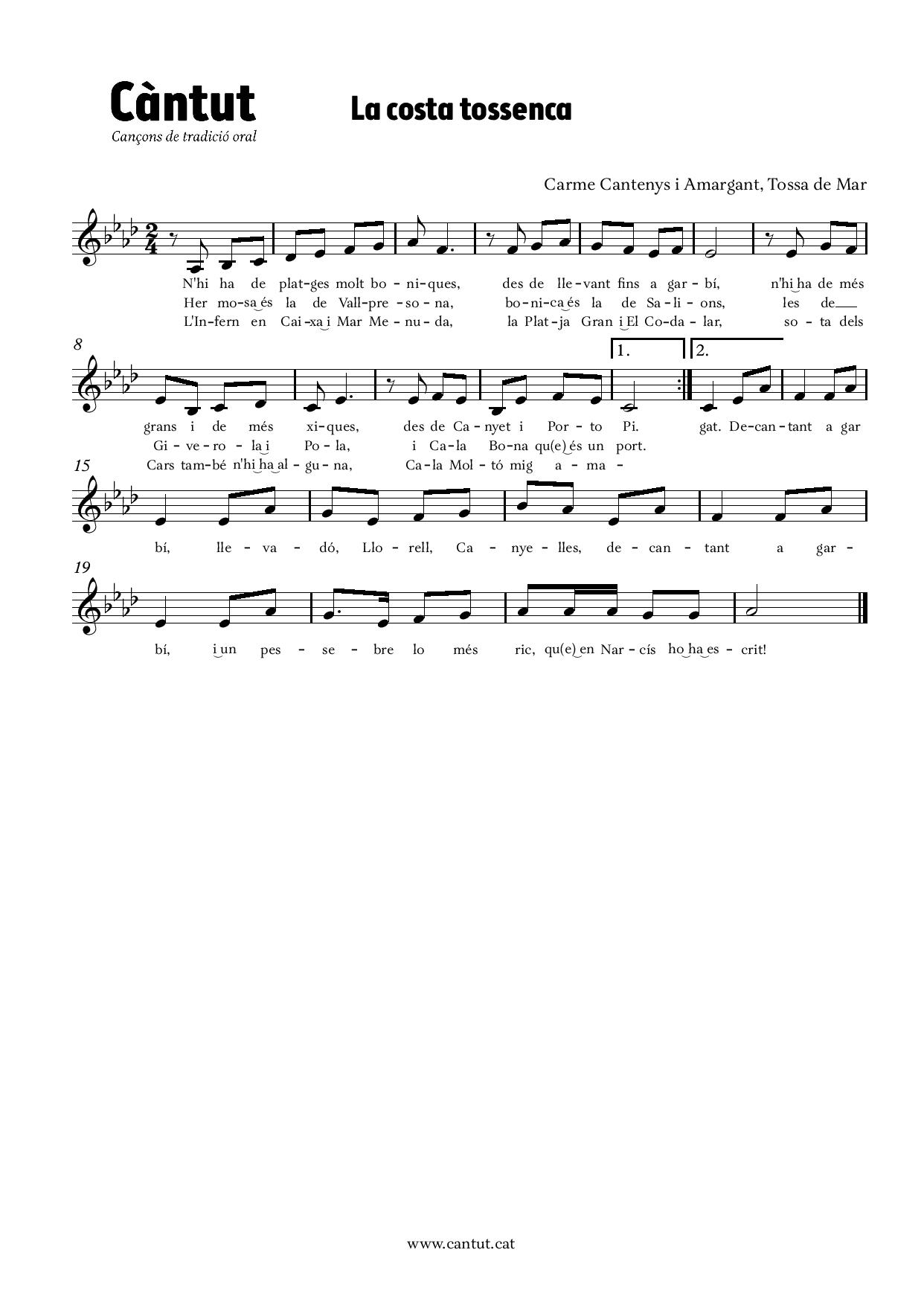 La partitura manuscrita, que porta el mateix títol que presentem, pot consultar-se al fons Vicenç Esteban i Darder de l’Arxiu Municipal de Tossa.