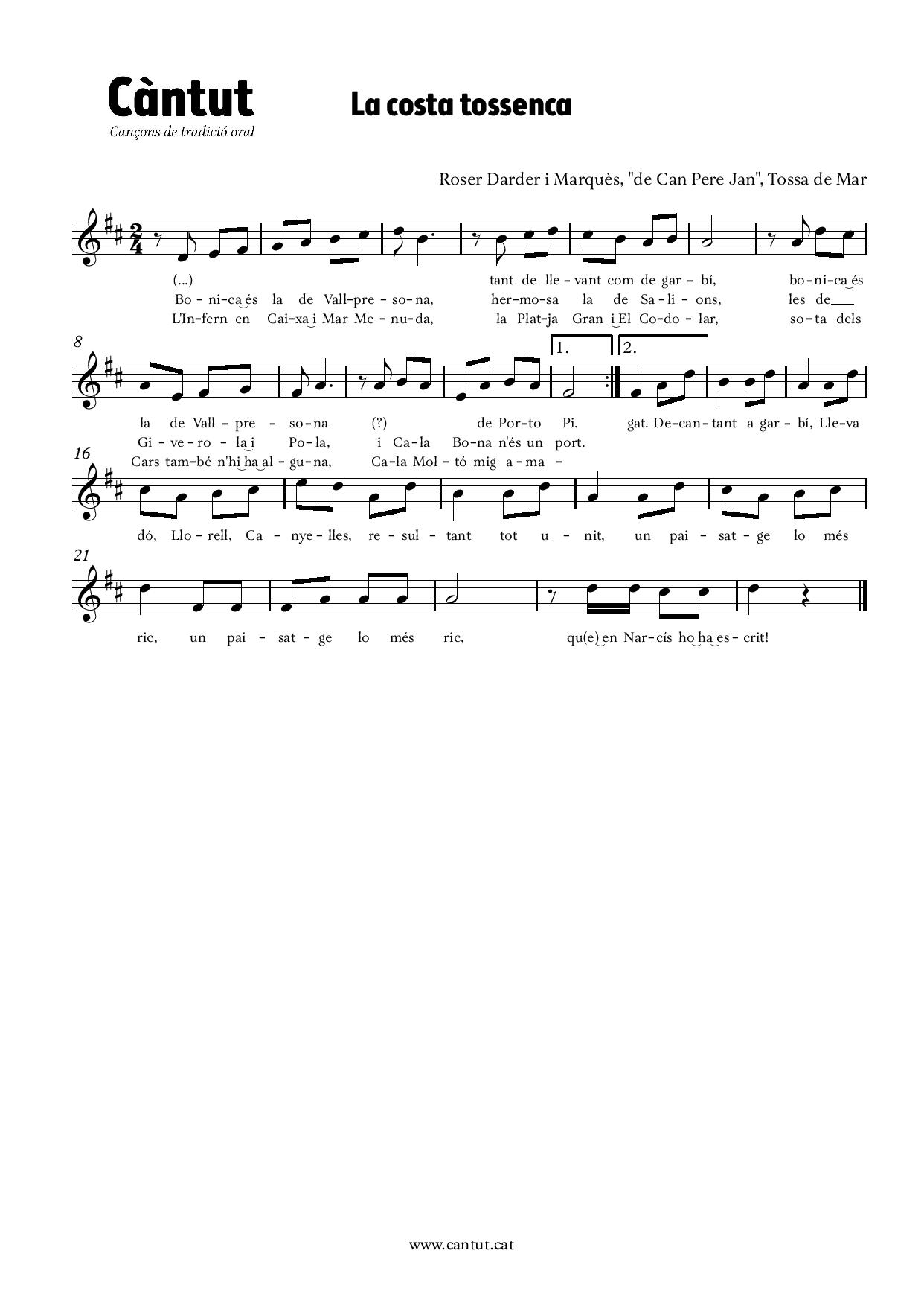 La partitura manuscrita, que porta el mateix títol que presentem, pot consultar-se al fons Vicenç Esteban i Darder de l’Arxiu Municipal de Tossa.